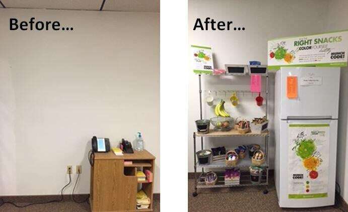 When staff was informed about the grant opportunity there was a tremendous amount of support. With new staff joining the office the environment began to change and health became a higher priority than in years past. Leadership staff was also supportive and a small wellness team came together to plan for and create a healthy snack bar! The team conducted an employee survey and taste tests in an effort to determine the most popular products to offer. They also implemented a Healthier Vending & Snack Bar Policy to sustain their hard work!